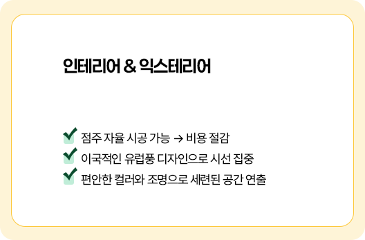 감각적인 유럽풍 무드로 매장의 품격을 높이고,
