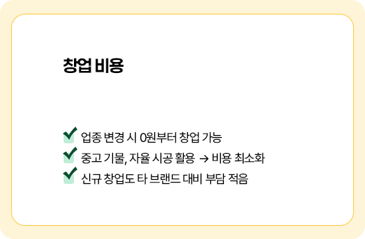 기존 주방 집기를 활용해 초기 비용을 최소화합니다.