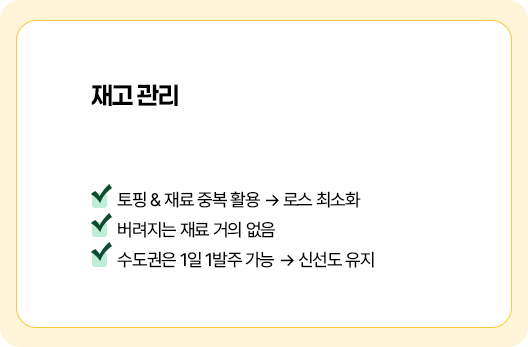 디저트와 식사대용 메뉴를 동시에 제공하여 이질감 없는 운영이 가능합니다.