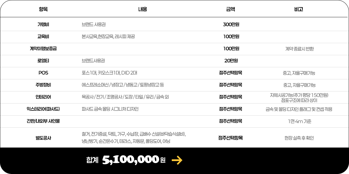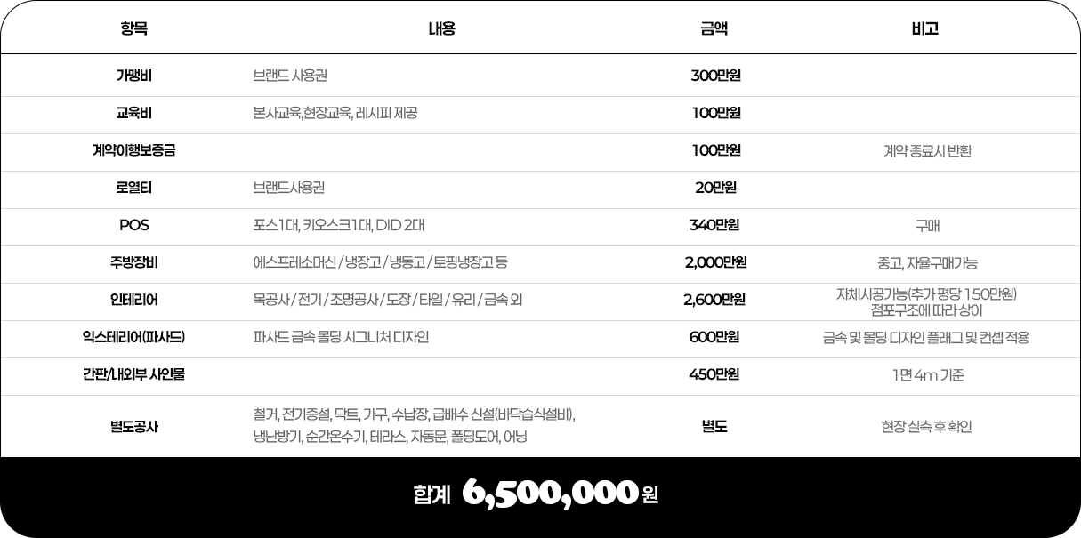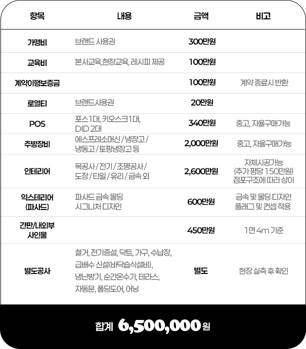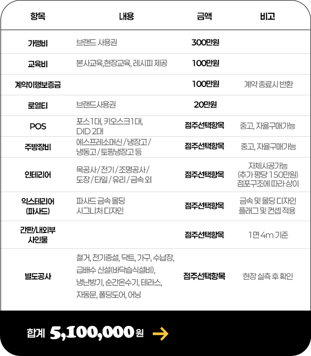 *위 조건은 점포사항(별도사항)에 따라 견적이 상이할 수 있습니다.